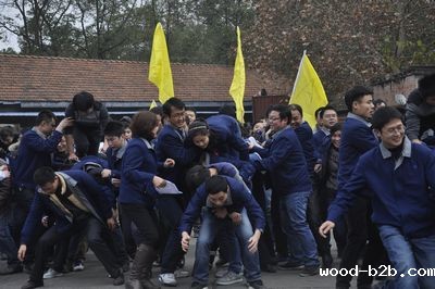 厂庆大会结束后,在专业拓展训练公司教练的指挥带领下,公司1200名员工分成12个训练方阵,每个方阵又分为A、B、C、D四支队伍分别开展训练活动。训练项目包括鼓动人心、南极浮冰、抢滩登陆、我们是最棒的团队和团队动力圈,其中前三项是小组任务,第四项是团队任务,最后一项是集体任务。所有项目都是依靠集体的力量和协调才能完成,这也是拓展训练所要达到的目的。尤其是团队动力圈项目,1000多名员工围成几个同心圆,场面宏大,充分展示了团队的力量。