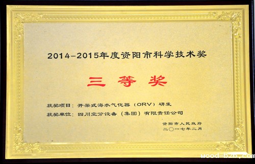 由我公司研发的开架式海水气化器(ORV),被资阳市人民政府评为2014—2015年度资阳市科学技术奖三等奖。