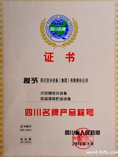 近日,我公司“川空”牌空分设备、低温液体贮运设备再次被四川省人民政府命名为四川名牌产品称号。