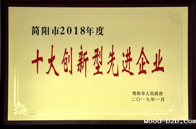 近日,我公司被简阳市人民政府授予简阳市2018年度“十大创新型先进企业”。