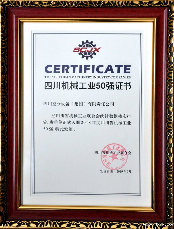 经四川省机械工业联合会统计数据核实排定,我公司以排名第三的业绩入围2018年四川省机械工业50强。