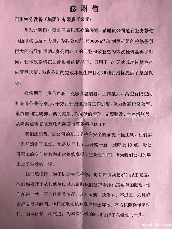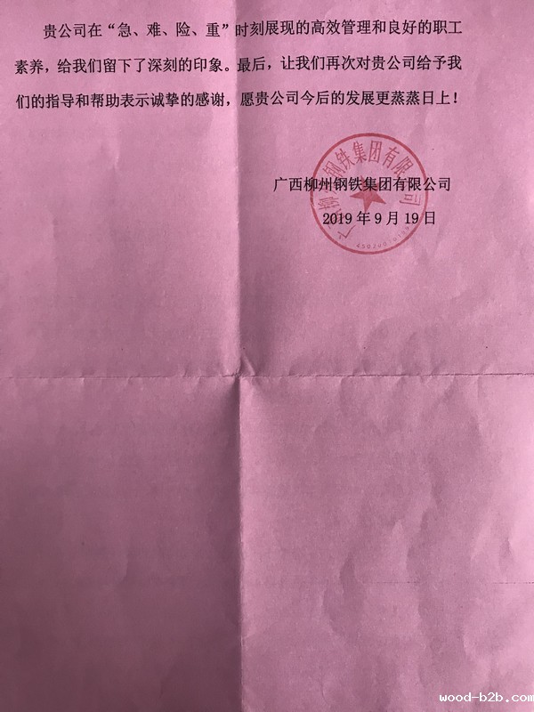 2019年9月19日,广西柳州钢铁集团有限公司向我公司发来感谢信,对我公司在广西柳钢设备维修工作中给予的指导和帮助表示真诚感谢。