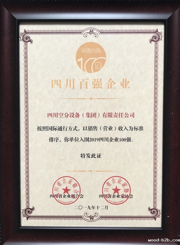 按照国际通行方式,以销售(营业)收入为标准排序,我公司再次入围2019【四川企业100强】、【四川制造业企业100强】,并被颁发荣誉证书。