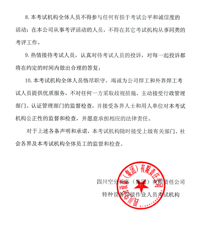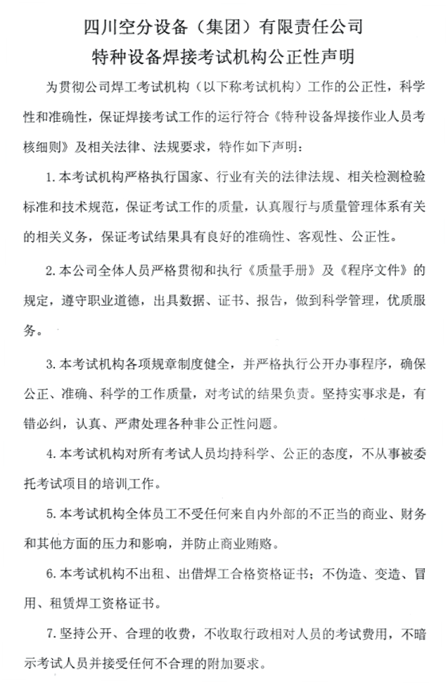 xingkong体育官网登录——特种设备焊接考试机构公正性声明