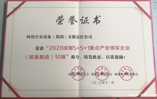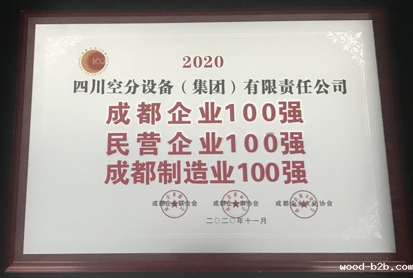 近日,我公司荣获2020年度“成都百强企业”“成都民营百强企业”“成都制造业百强企业”以及“2020成都5+5+1重点产业领军企业(装备制造)10强”等荣誉称号。这代表着客户、行业和社会对四川空分集团的肯定和认可。 不忘初心,砥砺前行。四川空分集团未来将继续坚持走创新之路,推动企业高质量发展,充分发挥成都“百强企业”在推动产业发展中的引领和带动作用,为国家经济社会发展做出更大的贡献。