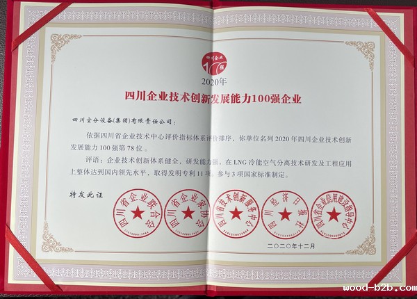 依据四川省企业技术中心评价指标体系,我公司因技术创新体系健全,研发能力强,在LNG冷能空气分离技术研发及工程应用上整体达到国内领先水平,取得了发明专利11项,且参与了3项国家标准制定,因此被评为2020年“四川企业技术创新发展能力100强企业(位列第78位)”,且我公司还入选了2020年“四川企业发明专利拥有量100强企业”(位列第42位)。