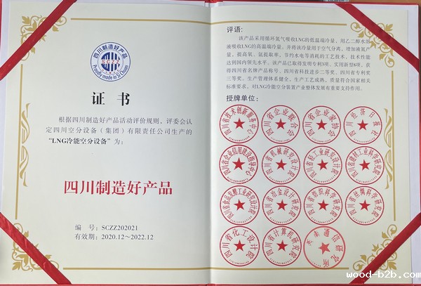 根据四川制造好产品活动评价规则,我公司生产的“LNG冷能空分设备”被评为“四川制造好产品”。目前该产品已取得发明专利3项、实用新型专利8项,获得了四川省名牌产品称号、四川省科技进步二等奖、四川省专利奖三等奖等荣誉。