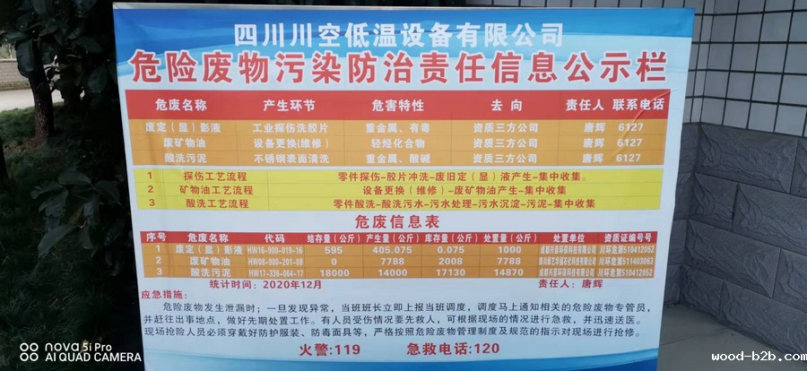 四川川空低温设备有限公司——危险废物污染防治责任信息公示栏