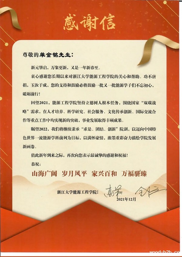 近日,四川空分集团董事长单金铭收到来自浙江大学发来的感谢信。该校对单董事长长期以来对浙江大学低温能源专业的关心与支持致以崇高的敬意和最衷心的感谢。 自2004年开始,“单金铭低温奖学金”已经连续18年不间断向华中科技大学、西安交通大学、浙江大学三所高校低温专业的优秀学子发放,至今发放金额累计已超过百万。由于受疫情管控影响,单金铭董事长未能亲临三所高校现场发放2021年度的奖学金,改由学校代为发放,浙江大学也由此给单金铭董事长发来感谢信。