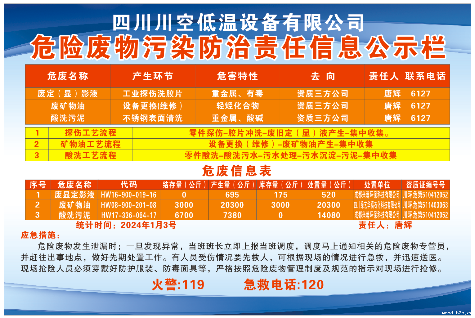 四川川空低温设备有限公司——危险废物污染防治责任信息公示栏