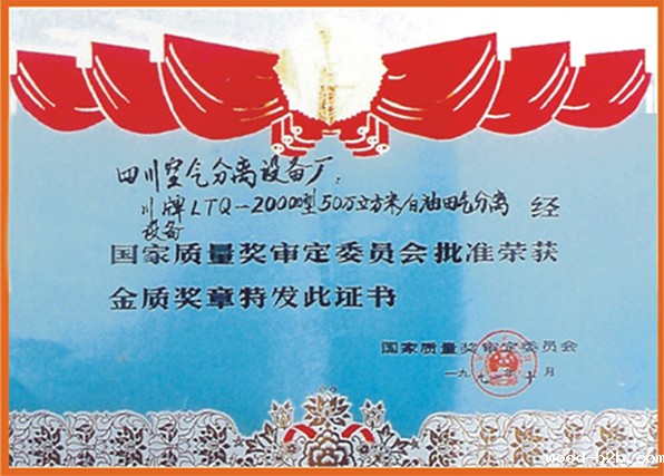 由川空集团公司开发的50×104Nm3/d油田气分离成套设备曾获国家科技成果二等奖及国家质量金奖。